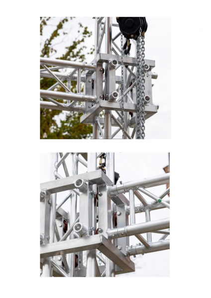 KRATOWNICE QUADROSYSTEM 290certyfikowany system 290 wykonany jest z rury o śr.50x3mm oraz lamelek śr. 20x2mm. Posiada gniazdo SZ02.02, kratownice aluminiowe dzięki swojej przestrzennej budowie mają atrakcyjny wygląd oraz dużą wytrzymałość.  Można z nich tworzyć różne konfiguracje. Są z powodzeniem stosowane jako elementy konstrukcji zadaszeń estradowych, targowych, wystawienniczych, konstrukcji telebimów, stelaży do diodowych ekranów LED, czy ekranów projekcyjnych, a także jako „bramki” oświetleniowe i „bramki” nagłośnieniowe oraz szkielety banerów reklamowych lub dekoracji scenicznych.