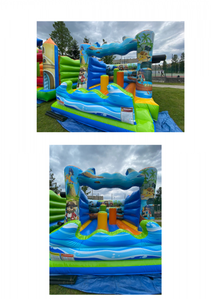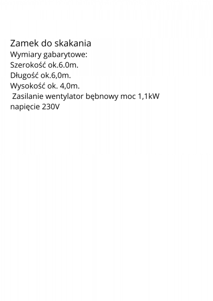 wym. Szer. 2,4 x dł. 6,2 x wys. 3m (zamek do skakania, ścianka wspinaczkowa, zjeżdżalnia)