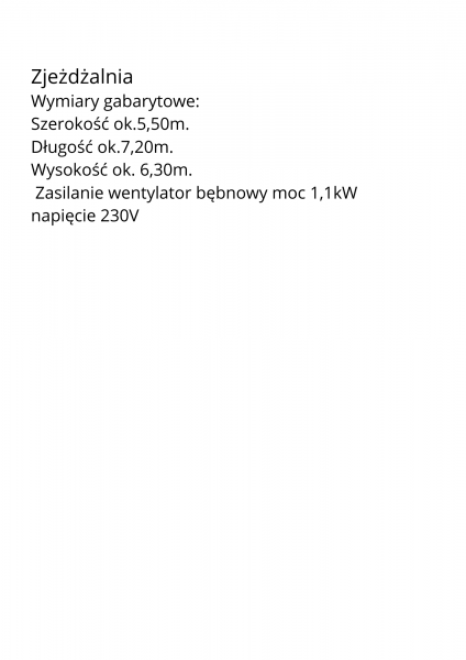 ZJEŻDŻALNIA PNEUMATYCZNA ŚREDNIA „FUNSLIDE” – urządzenie atestowane, wymiary gabarytowe: wys. 6,0m, szer. 5,0m, dł. 8,5m, grubość podstawy 0,7m, kąt pochylenia ślizgu 45 stopni. Urządzenie wielokolorowe zasilane powietrzem, wentylator bębnowy z silnikiem 0,75kW.